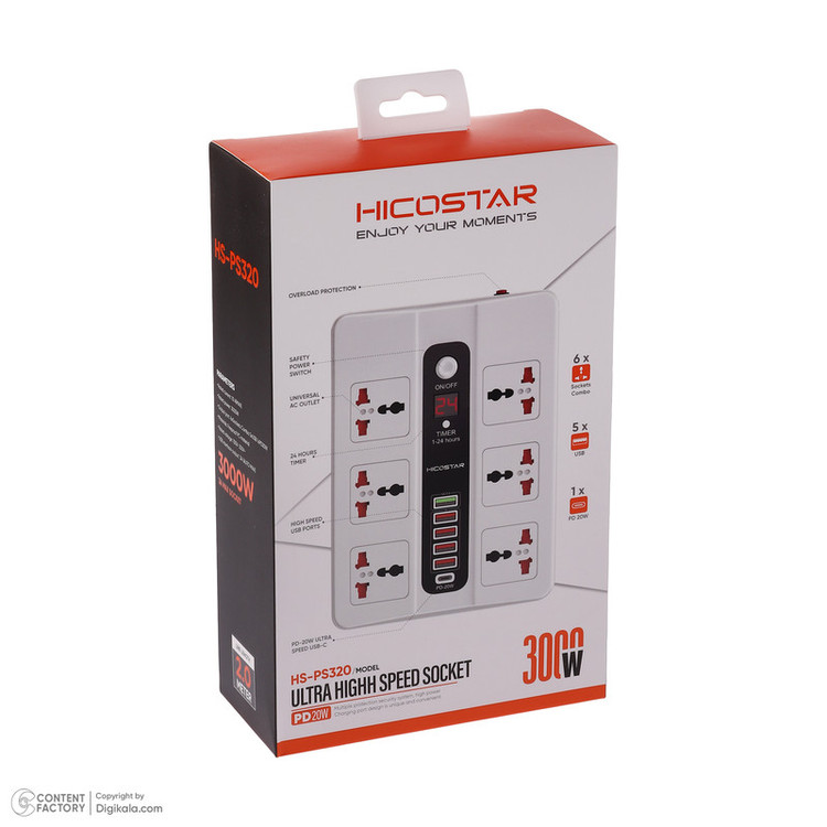 اگر به دنبال یک چندراهی برق مدرن، قدرتمند و ایمن برای استفاده روزمره خود هستید، چندراهی برق HICOSTAR مدل HS-PS320 میتواند یکی از بهترین انتخابهای شما باشد. این محصول با طراحی شیک و عمودی، علاوه بر صرفهجویی در فضا، امکانات پیشرفتهای در اختیار شما قرار میدهد. HS-PS320 مجهز به 6 پریز ترکیبی یونیورسال است که با انواع دوشاخهها سازگاری دارد. بنابراین دیگر نیازی به تبدیل ندارید و میتوانید بهراحتی دستگاههای مختلف را به آن متصل کنید. علاوه بر آن، 5 درگاه USB برای شارژ گوشی، تبلت، اسپیکر یا هر وسیلهی دیگری که از USB پشتیبانی میکند، در اختیار شماست. همچنین وجود یک پورت USB-C با توان 20 وات (PD 20W) امکان شارژ سریع برای دستگاههای مدرن را فراهم میکند. یکی از ویژگیهای برجستهی این چندراهی، تایمر 24 ساعتهی قابل تنظیم آن است. با استفاده از این قابلیت، میتوانید زمان روشن یا خاموش شدن برق خروجی را برنامهریزی کنید و از مصرف بیرویه برق جلوگیری کرده و عمر دستگاههای خود را افزایش دهید. همچنین وجود کلید ایمنی مرکزی و سیستم محافظت در برابر اضافه بار (Overload Protection) خیال شما را از بابت نوسانات برق راحت میکند. در صورت بروز اضافهبار، دستگاه بهصورت خودکار جریان برق را قطع میکند تا به تجهیزات شما آسیبی وارد نشود. با توان خروجی 3000 وات، این محصول برای استفاده همزمان از چند دستگاه سنگین نیز کاملاً مناسب است. از استفاده در منزل برای تلویزیون و شارژ موبایل گرفته تا محل کار، خوابگاه یا حتی سفرهای کاری، HS-PS320 همراهی مطمئن و پرکاربرد است.