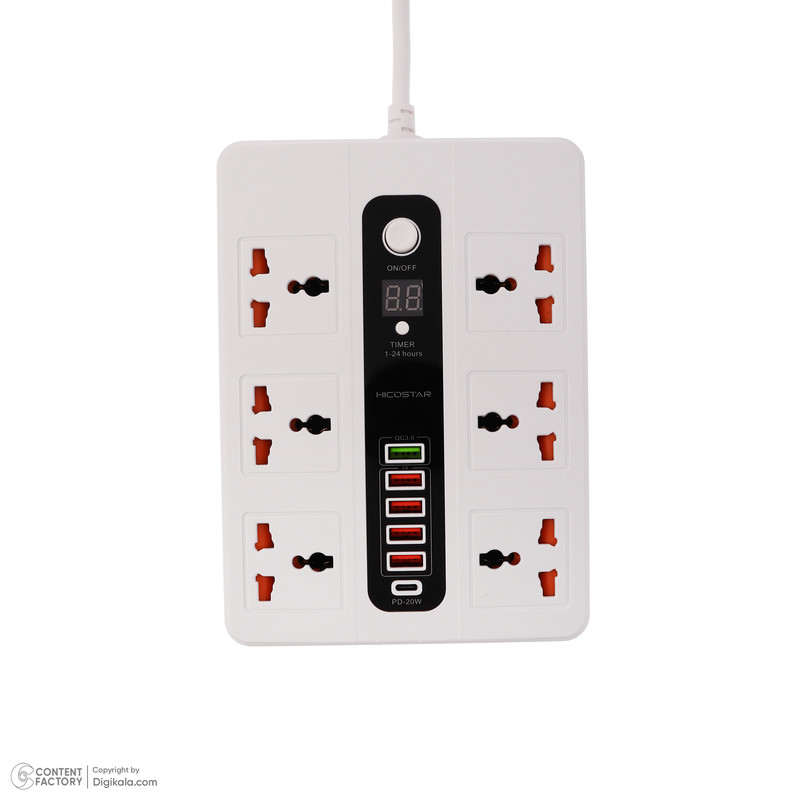 اگر به دنبال یک چندراهی برق مدرن، قدرتمند و ایمن برای استفاده روزمره خود هستید، چندراهی برق HICOSTAR مدل HS-PS320 میتواند یکی از بهترین انتخابهای شما باشد. این محصول با طراحی شیک و عمودی، علاوه بر صرفهجویی در فضا، امکانات پیشرفتهای در اختیار شما قرار میدهد. HS-PS320 مجهز به 6 پریز ترکیبی یونیورسال است که با انواع دوشاخهها سازگاری دارد. بنابراین دیگر نیازی به تبدیل ندارید و میتوانید بهراحتی دستگاههای مختلف را به آن متصل کنید. علاوه بر آن، 5 درگاه USB برای شارژ گوشی، تبلت، اسپیکر یا هر وسیلهی دیگری که از USB پشتیبانی میکند، در اختیار شماست. همچنین وجود یک پورت USB-C با توان 20 وات (PD 20W) امکان شارژ سریع برای دستگاههای مدرن را فراهم میکند. یکی از ویژگیهای برجستهی این چندراهی، تایمر 24 ساعتهی قابل تنظیم آن است. با استفاده از این قابلیت، میتوانید زمان روشن یا خاموش شدن برق خروجی را برنامهریزی کنید و از مصرف بیرویه برق جلوگیری کرده و عمر دستگاههای خود را افزایش دهید. همچنین وجود کلید ایمنی مرکزی و سیستم محافظت در برابر اضافه بار (Overload Protection) خیال شما را از بابت نوسانات برق راحت میکند. در صورت بروز اضافهبار، دستگاه بهصورت خودکار جریان برق را قطع میکند تا به تجهیزات شما آسیبی وارد نشود. با توان خروجی 3000 وات، این محصول برای استفاده همزمان از چند دستگاه سنگین نیز کاملاً مناسب است. از استفاده در منزل برای تلویزیون و شارژ موبایل گرفته تا محل کار، خوابگاه یا حتی سفرهای کاری، HS-PS320 همراهی مطمئن و پرکاربرد است.