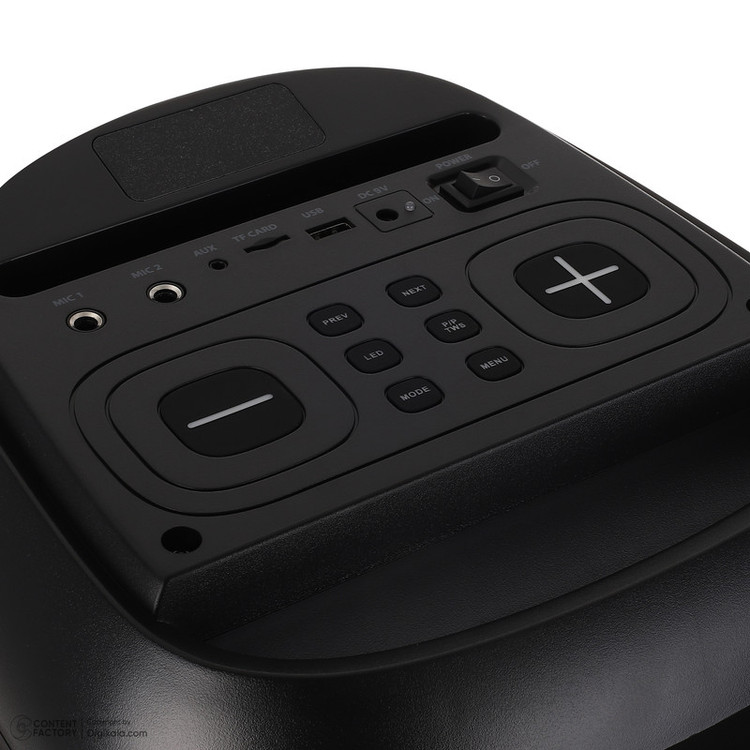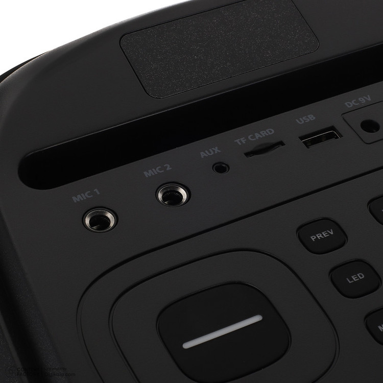 دارای صفحه نمایش LED / مجهز به نور RGB / قابلیت تنظیم VOLUME / LED / دارای شیار کارت حافظه / پورت USB / دو عدد ورودی میکروفون / دکمه تنظیم بین حالتهای بلوتوث / AUX و FM