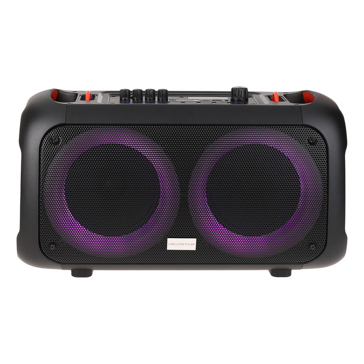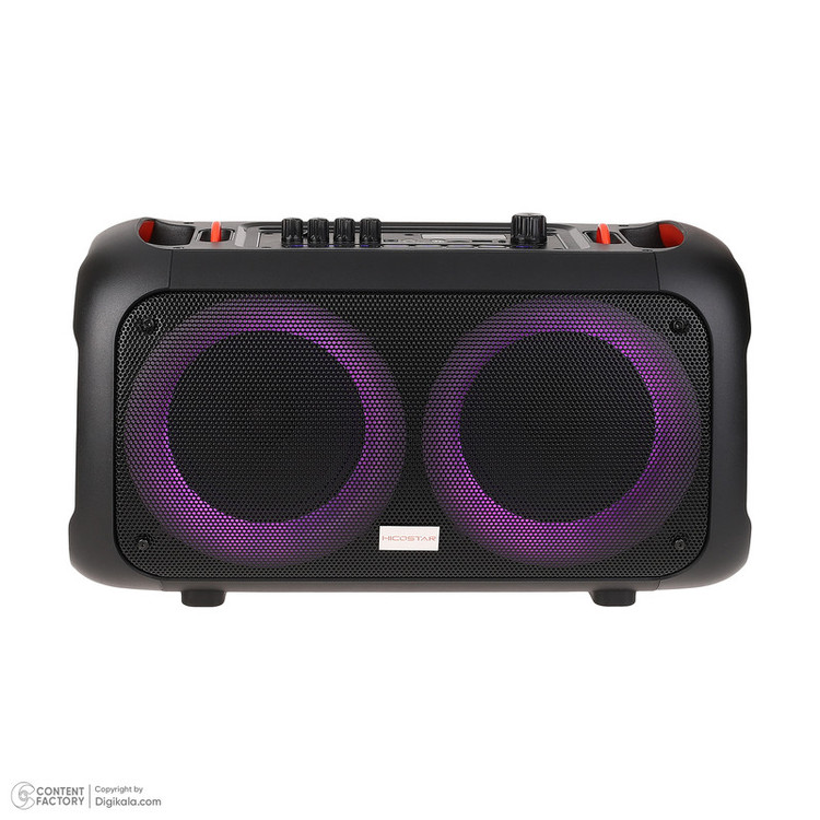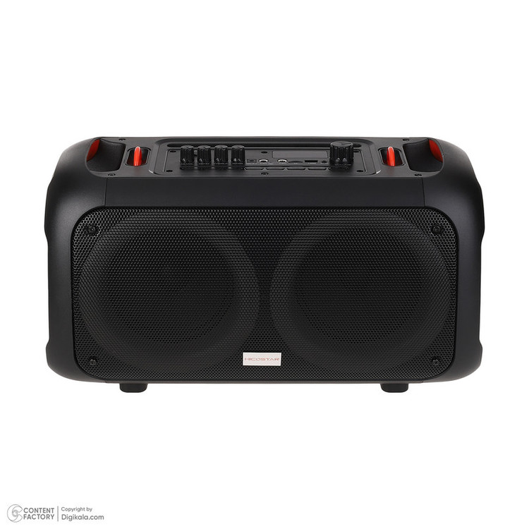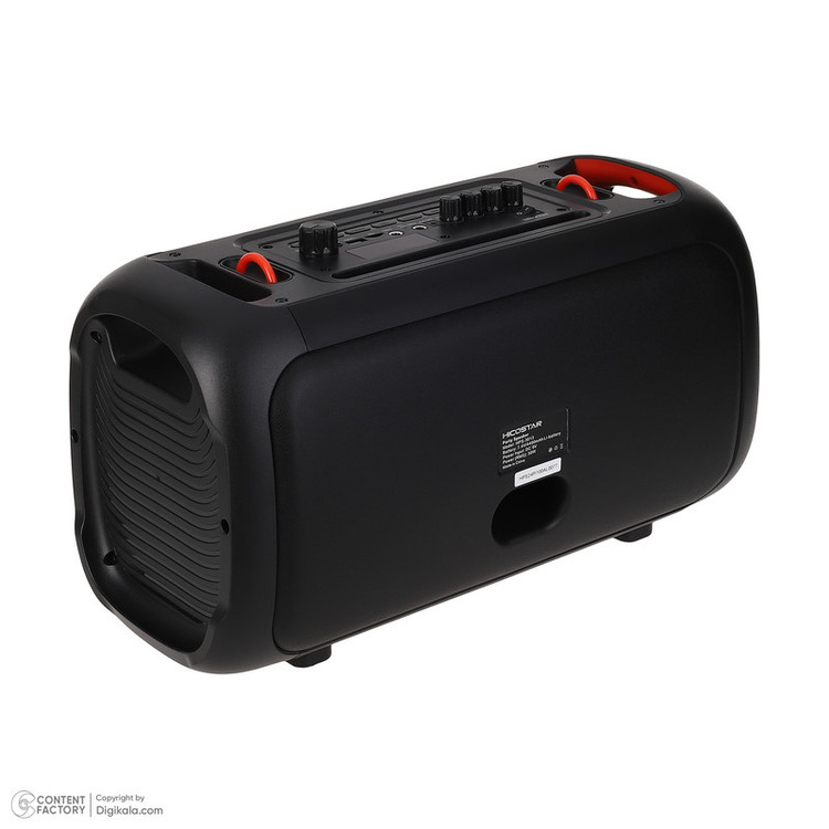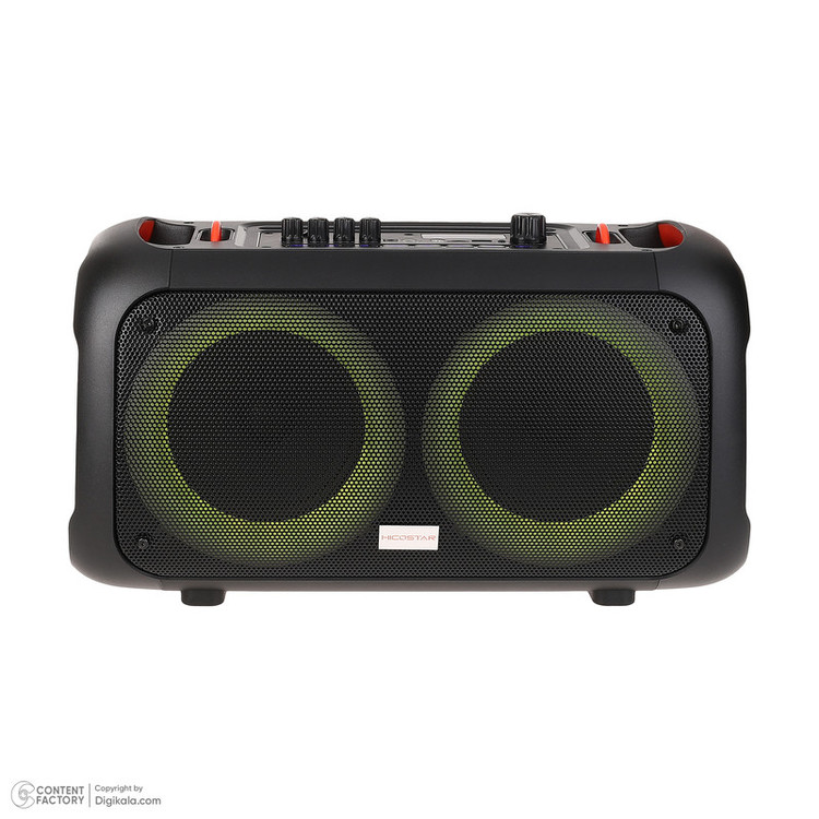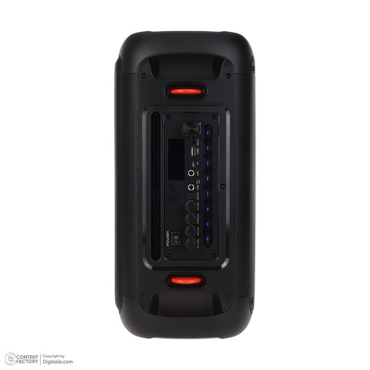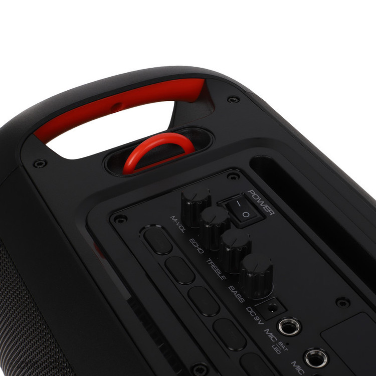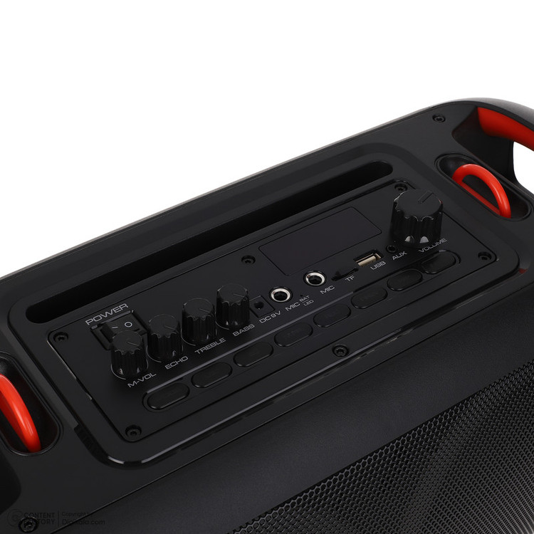 دارای صفحه نمایش LED / مجهز به نور RGB / قابلیت تنظیم M-VOL / ECHO / TREEBLE / BASS / VOLUME / دارای شیار کارت حافظه / پورت USB / ورودی میکروفون / دکمه تنظیم بین حالتهای بلوتوث / AUX و FM