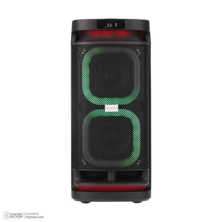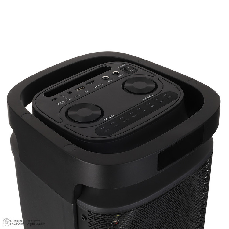 مجهز به نور RGB / قابلیت تنظیم VOLUME / MIC-VOL/ دارای شیار کارت حافظه / پورت USB / دو عدد ورودی میکروفون / دکمه تنظیم بین حالتهای بلوتوث / AUX و FM