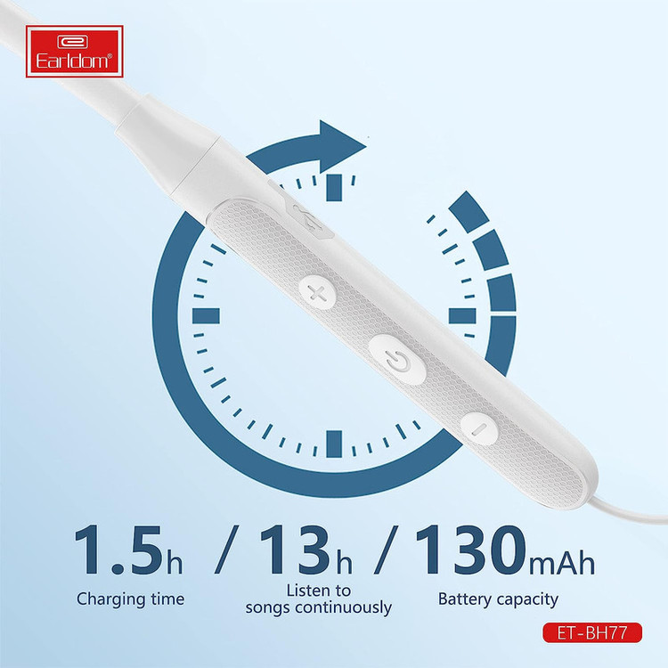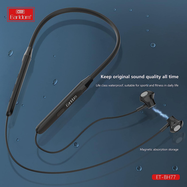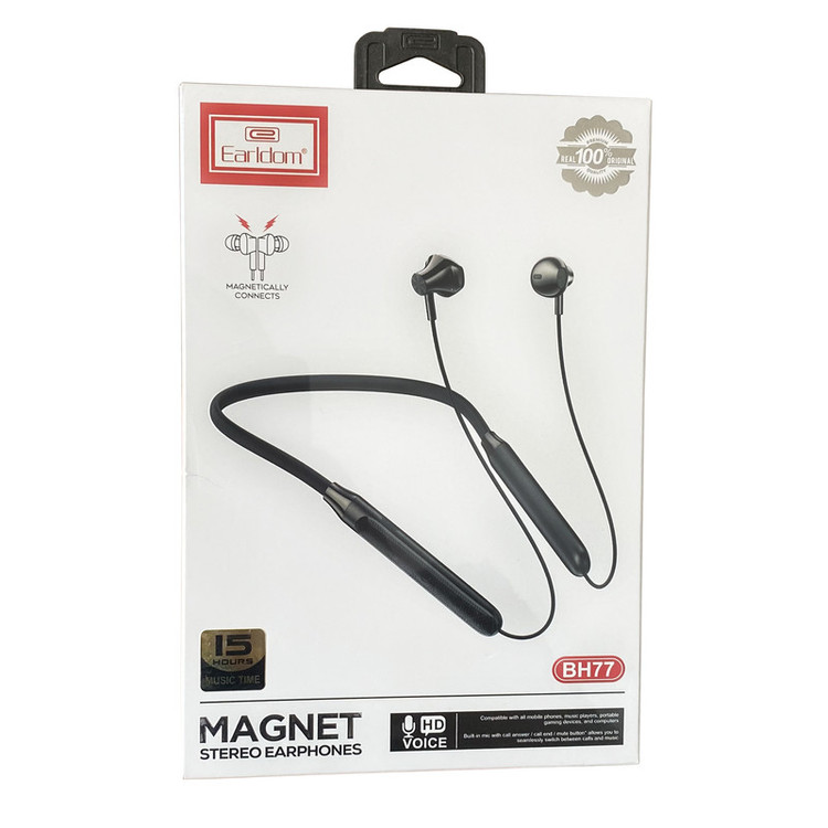هندزفری های دورگردنی به دلیل راحتی در حمل و زیبایی، محبوبیت بسیاری در سرتاسر دنیا پیدا کرده اند، از این رو کمپانی ارلدام نیز از رقبا عقب نمانده و هندزفری بلوتوثی دورگردنی خود را با عنوان earldom BH77 عرضه کرد. این هندزفری از طریق بلوتوث نسخه 5 به تلفن همراهتان متصل شده و تا برد 10 متر اتصالی بدون نویز و قطعی را برایتان تضمین می کند. بر روی این هندرفری کلید های مدیریتی تعبیه شده که به وسیله آن می توان فعالیت های در حال انجام مانند مدیریت تماس، مدیریت موسیقی، کم و زیاد کردن صدا و فراخوانی دستیارهای صوتی اپل یا گوگل را کنترل کرد. میکروفون تعبیه شده در BH77 می تواند صدای کاربر را با کیفیت HD منتقل کند.باتری تعبیه شده در BH77 نیز توسط یک کابل Micro USB در مدت زمان 1 الی 2 ساعت به صورت کامل شارژ می شود و پس از آن به طور تقریبی می تواند حدود 12 الی 15 ساعت به پخش موسیقی یا مکالمه بپردازد . همچنین پشت گوشی های آن حالت مغناطیسی دارد و هنگام آویزان کردن هندزفری در پشت گردن ، گوشی های آن بر روی سینه به هم میچسبند .