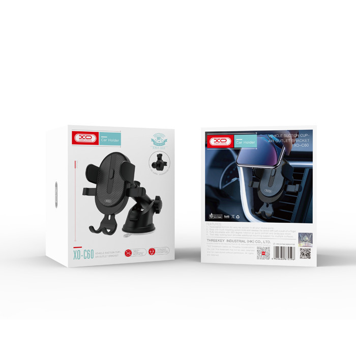 پایه های نگهدارنده یا همان هولدر ها کاربرد عمومی داشته و نه تنها برای گوشی موبایل استفاده می شوند بلکه میتوان از آنها برای نگهداری موقعیتیاب های GPS و موزیک پلیر ها هم استفاده کرد. این پایهها دارای فکهایی(نگهدارنده) فنری هستند که بهصورت کشویی بهاندازه عرض گوشی موبایل یا وسیله مورد نظر بازشده و از دو طرف آن را نگه میدارند.هولدرها به خاطر بادکشهای لاستیکی که دارند معمولا قابلیت نصب بر روی داشبورد و یا شیشه جلوی اتومبیل را دارند. امکان چرخش قسمت نگهدارنده گوشی برای قرارگیری در زوایای دلخواه که راحتی بیشتری را برای راننده فراهم کند از دیگر قابلیت هایی می باشد که میتواند مدنظر قرار گیرد. XO- C60 یک پایه نگهدارنده مناسب با قابلیت چرخش 360 درجه دارد و از کیفیت ساخت بالایی برخوردار است.در ضمن قابلیت نصب بر روی شیشه ،داشبورد و مکان های دیگر را داراست