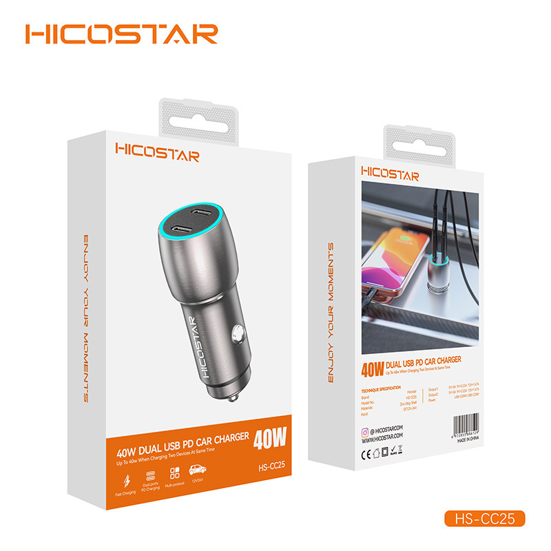 شارژر موبایل داخل ماشین HS-CC25 دارای 2 خروجی تایپ سی با حداکثر توان 36 وات است و امکان اتصال دو دستگاه همزمان جهت شارژ با قابلیت شارژ سریع PD را فراهم می کند. خروجی هر کدام از تایپ سیها برابر با 5V3A, 9V2.22A,12V 1.67A است؛ همچنین این شارژر فندکی شش سطح از حفاظت ایمنی را ارائه میدهد و از باتری دستگاه شما در برابر آسیبهایی مانند شارژ بیش از حد، ولتاژ بیش از حد، جریان بیش از حد، اضافه بار، گرمای بیش از حد و اتصال کوتاه محافظت میکند.ساختار این محصول هایکواستار از آلیاژ آلومینیوم است مقاومت بالایی در برابر آسیب و ضربه دارد و ابعادی جمعوجور دارد؛ جای بسیار کمی را اشغال میکند و به راحتی قابل نصب است. بعد از نصب در جا فندکی خودرو هم لغزشی نخواهد داشت و در جادههای ناهموار هم از جای خود تکان نمیخورد. دارای نواری از چراغ LED رنگی بوده تا در تاریکی شب راحتتر آن را پیدا کنید.