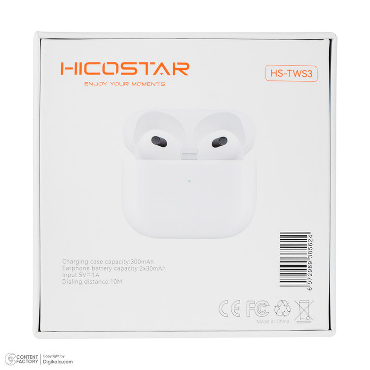 هندزفری بلوتوثی هایکواستار مدل HS-TWS3 گزینه ای اقتصادی و کاربردی برای کسانی است که به دنبال یک هدفون بی سیم با کیفیت صدای مناسب و طراحی ارگونومیک و قابلیت های قابل قبول هستند . این محصول با استفاده از بلوتوث نسخه 5.3 اتصال سریع و پایدار را تا فاصله 10 متر تضمین میکند و مناسب برای مکالمه ، گوش دادن به موسیقی و استفاده روزمره است. باتری کیس شارژ با ظرفیت 300 میلی آمپر ساعت عملکرد مناسبی را برای استفاده در طول روز ارائه می دهد. این هدفوت بلوتوثی در مدت حدود 1.5 ساعت به طور کامل شارژ شده و پس از آن تا 4 ساعت مکالمه یا حدود 4.5 ساعت پخش موسیقی را پشتیبانی میکند. اگر به دنبال یک هدفون بی سیم با عملکرد پایدار و قیمت مناسب هستید، HICOSTAR HS-TWS3 می تواند انتخابی کاربردی و مقرون به صرفه برای شما باشد.